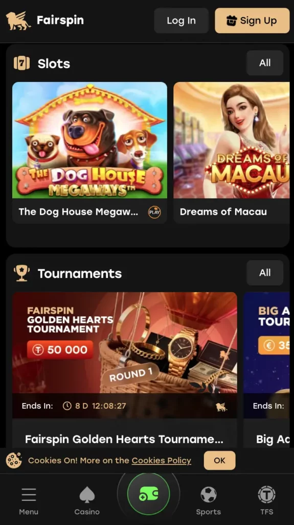 Fairspin has a beautiful website with a black-and-gold theme, giving it a sleek look with brilliant images. In addition to its beauty, the website is also super easy to navigate with a short loading time. You can use different filters to find casino games easily. There is also a side menu that makes it easy to go to various pages on the website.